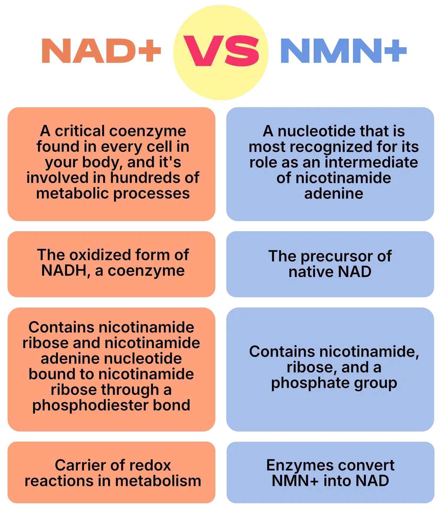 It’s really important to clearly distinguish between Native NAD (NAD) and Native NMN (NMN), against beta NAD (NAD+) and beta NMM (NMN+)